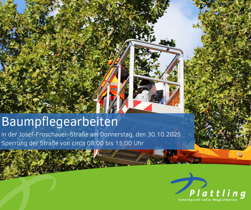 Meldung vom 28.10.2025 Am Donnerstag, den 30.10.2025 finden in der Josef-Froschauer-Straße Baumpflegearbeiten seitens des städtischen Bauhofes statt.