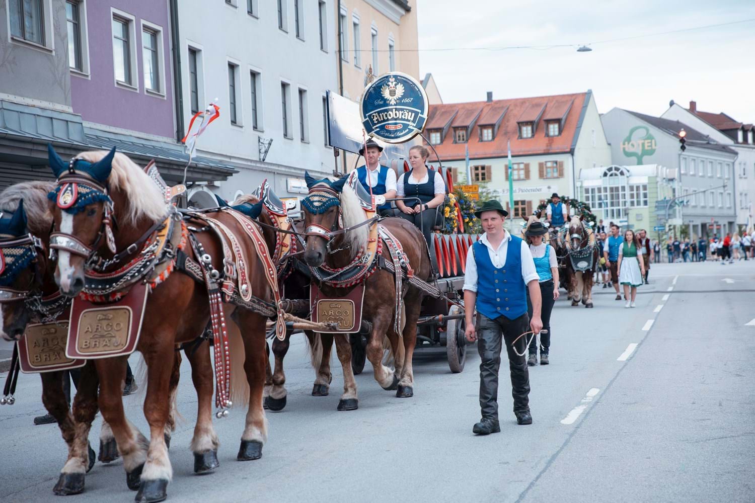 Den feierlichen Auftakt bildete der große Festzug, an dem sich über 2.500 Plattlingerinnen und Plattlinger mit ihren Vereinen und Verbänden beteiligten. Gemeinsam ging es hinaus auf die Festwiese, wo das Volksfest durch den Ersten Bürgermeister mit dem traditionellen Anzapfen offiziell eröffnet wurde.