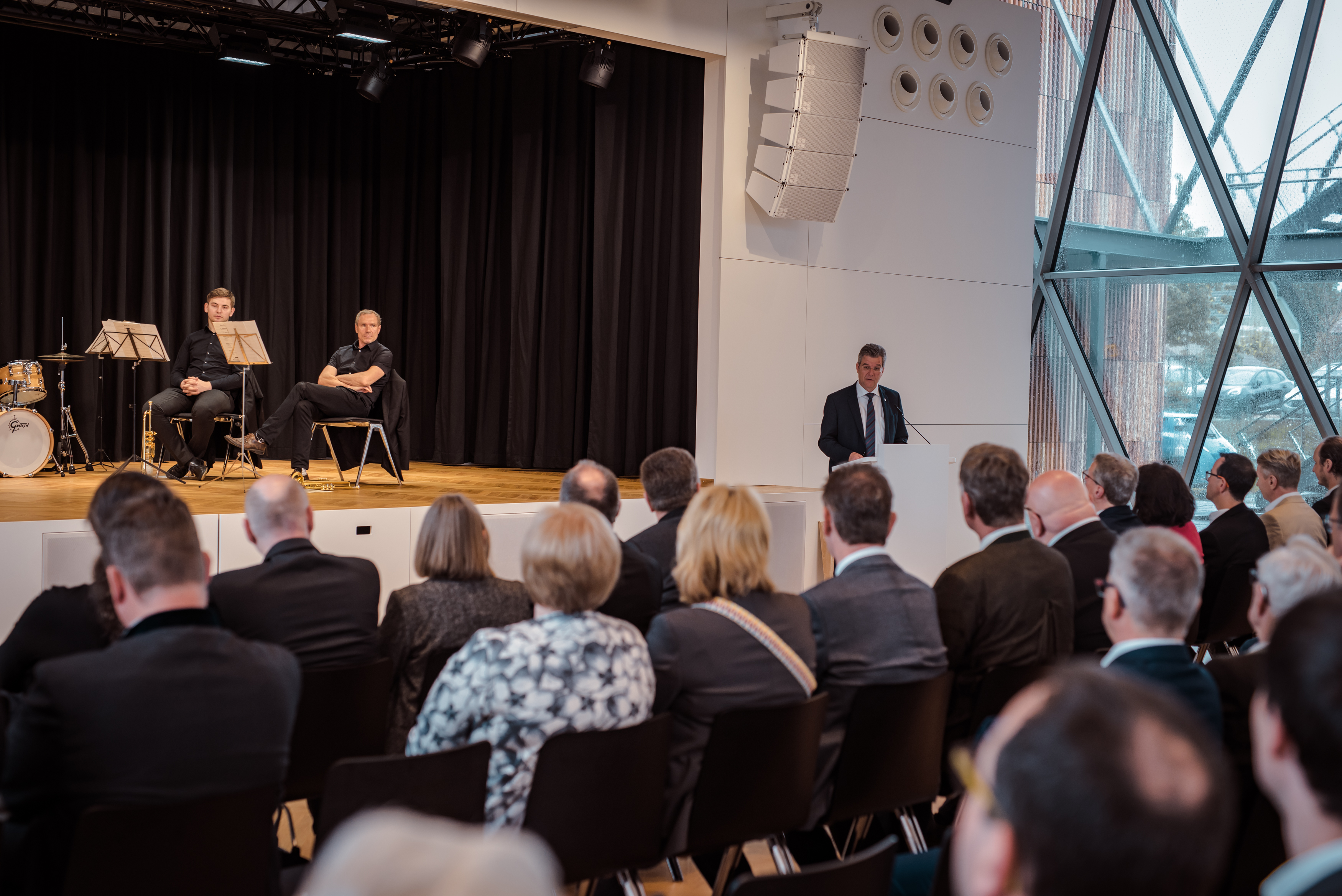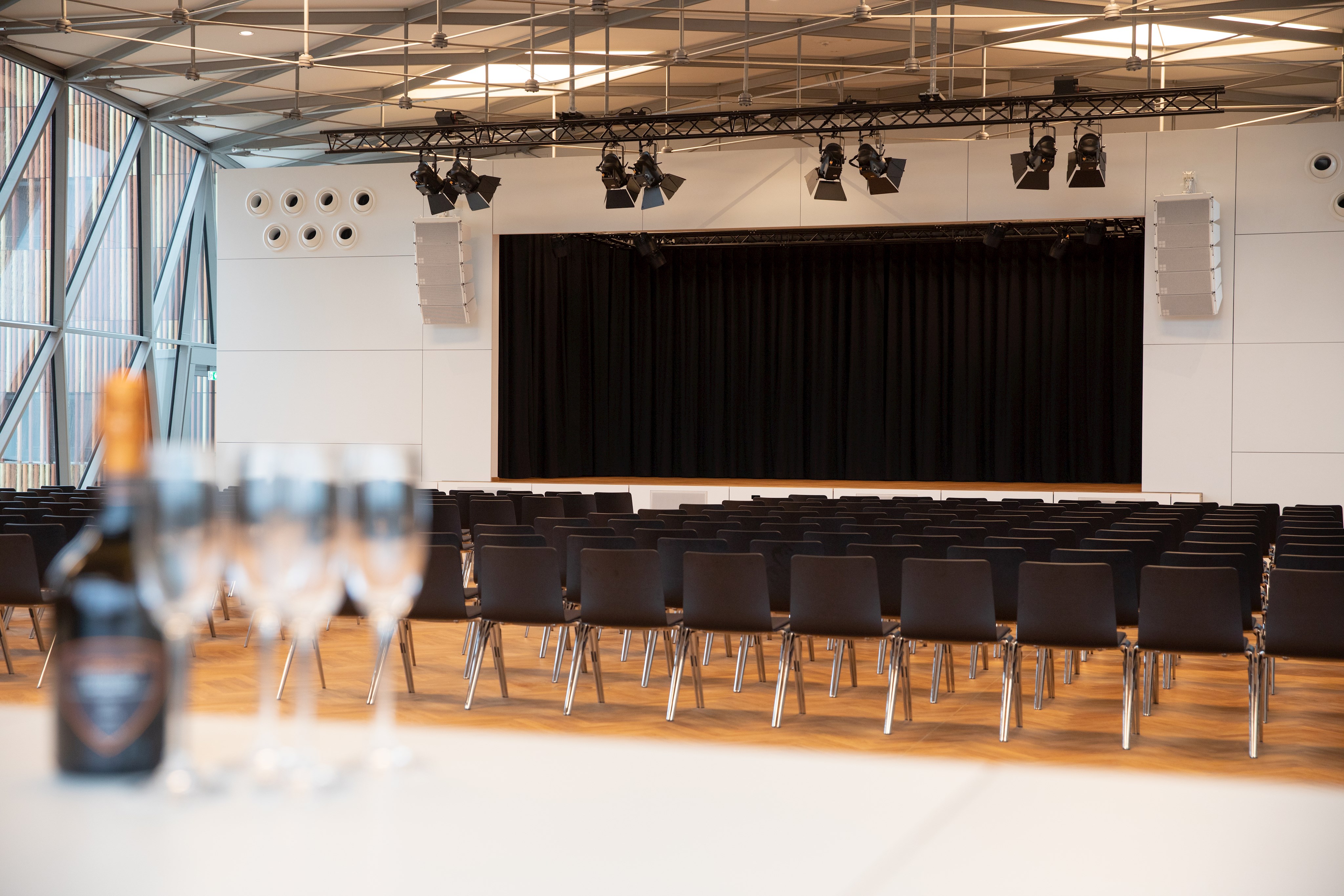 Die modern ausgestattete Bühne kann sowohl für Theateraufführungen, Konzerte aber auch Vorträge genutzt werden.