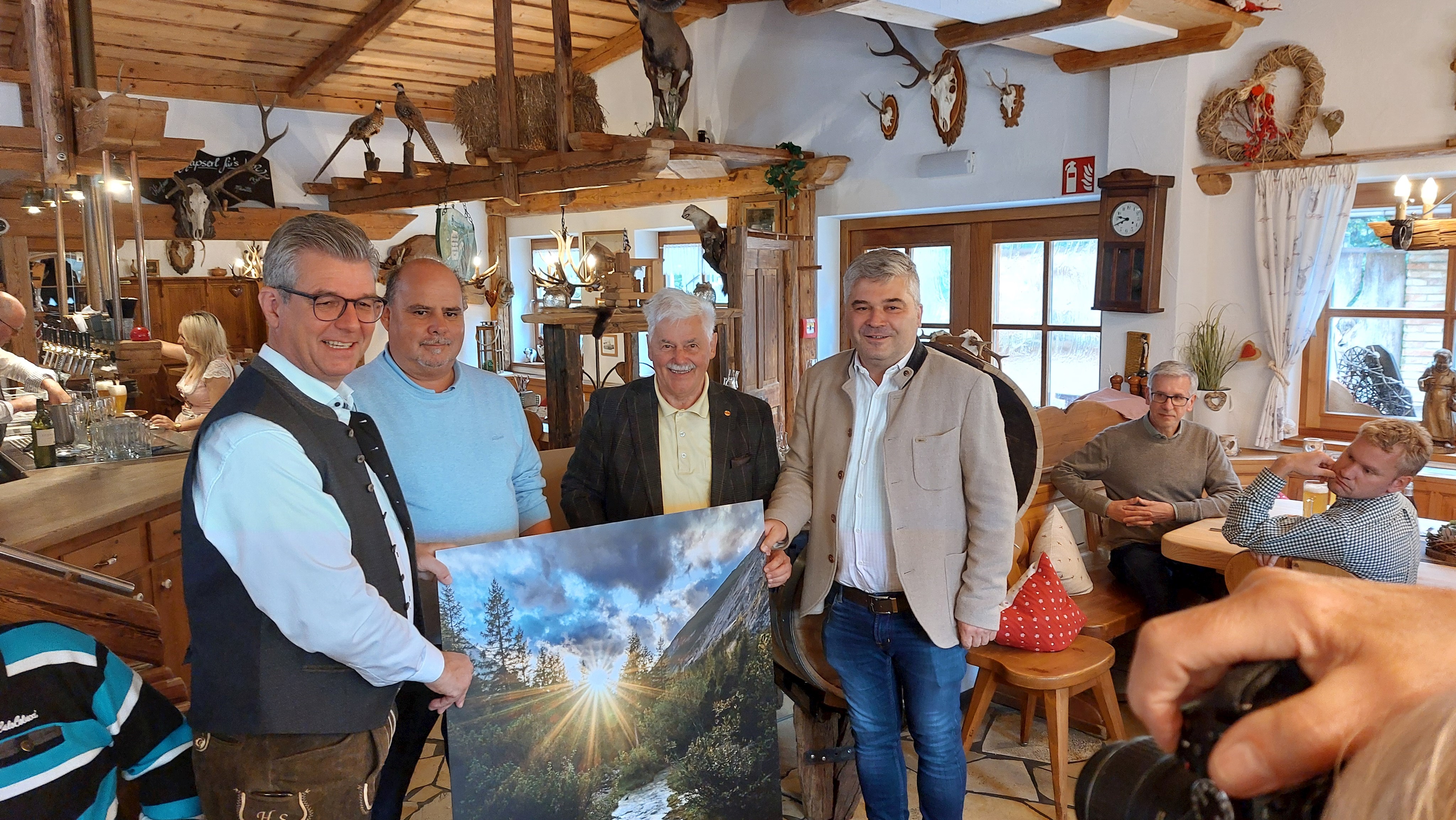 Abgerundet wurde der Besuch mit einem Weißwurstfrühstück im Hotel zur Isar, bevor die Delegation die Heimreise nach Scharnitz antrat.Im Rahmen dieser Begegnung fand auch die feierliche Übergabe der Freundschaftsgeschenke.