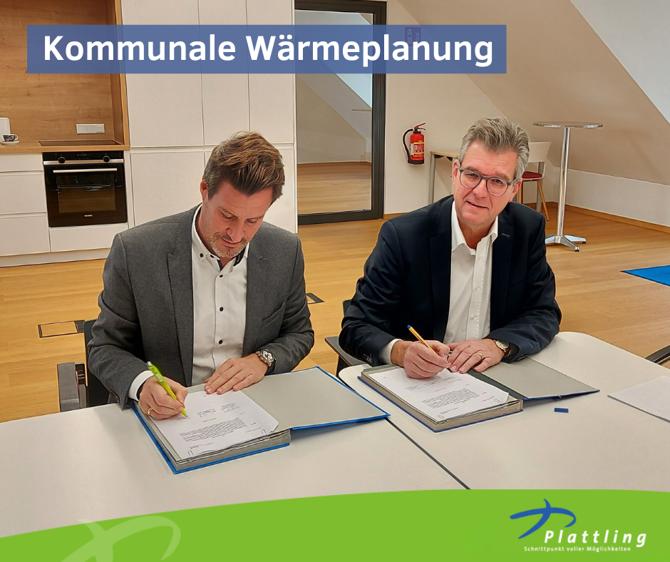 Mit der Vertragsunterzeichnung beginnt der offizielle Start für die kommunale Wärmeplanung mit einem kompetenten Partner an der Seite der Stadt Plattling.