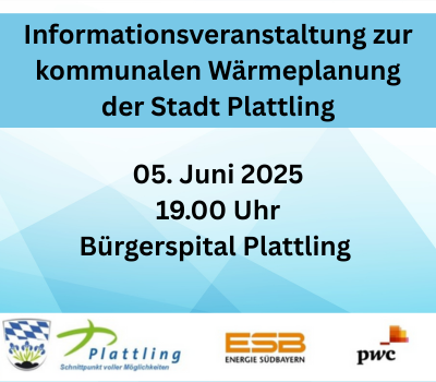 Die Stadt Plattling lädt alle Bürgerinnen und Bürger herzlich zur öffentlichen Informationsveranstaltung rund um die kommunale Wärmeplanung ein.